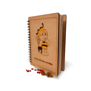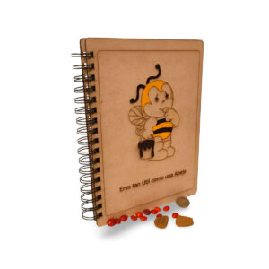 Cuaderno artesanal elaborado con tapas en madera MDF de 3 mm, diseñado para quienes buscan un producto funcional, resistente y totalmente personalizado. Cada cuaderno puede llevar diseños grabados y personalizados, convirtiéndolo en una pieza única.